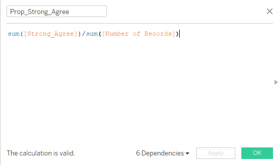 Prop_Strong_Agree - Next, we create a proportion value for earlier calculated Strong_Agree value:
